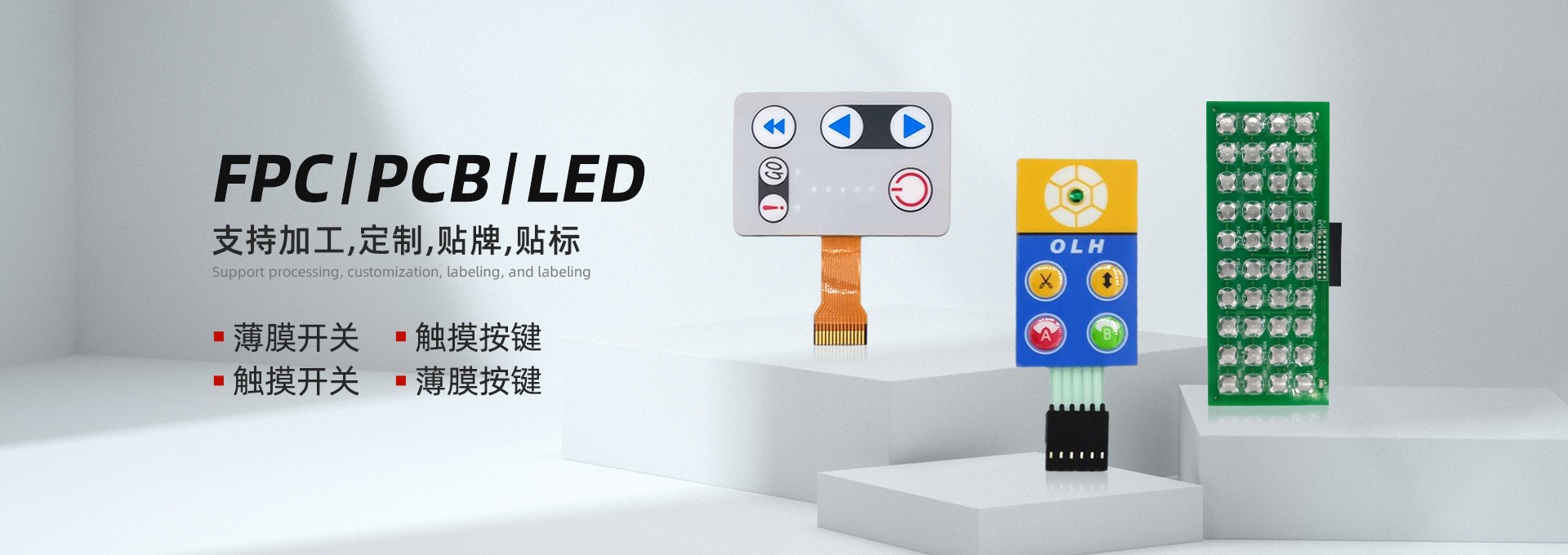 主要生产FPC/PCB/EL/LED薄膜开关,薄膜按键,薄膜键盘,薄膜电路等系列产品